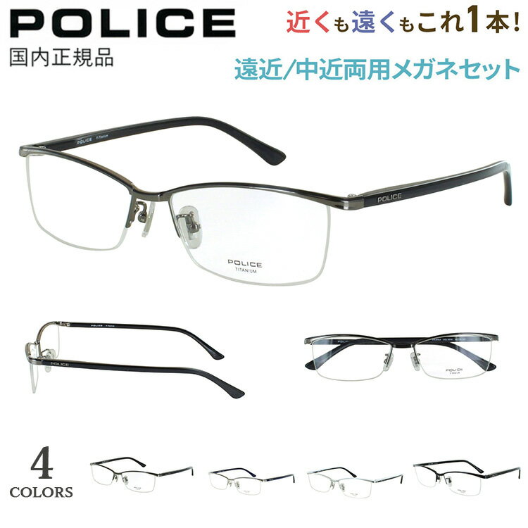 老眼鏡 遠近両用 中近両用 メガネ おしゃれ メンズ リーディンググラス ポリス ナイロール ブローモデル チタンフレーム POLICE VPLN69J 0530 0568 0579 0S11 ブランド シニアグラス 遠くも近くも見える 男性 40代 50代 60代 かっこいい シャープ スタイリッシュ ショップ:サングラス・メガネのサングラー