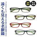 【遠くも見える老眼鏡】遠近両用 スクエア クローバー 軽量フレーム 形状記憶 +1.0 +1.5 +2.0 +2.5 老眼鏡 リーディンググラス シニアグラス 遠視 老眼 裸眼 度なし 伊達 だて ダテ メガネ レディース メンズ 男性 女性 遠く