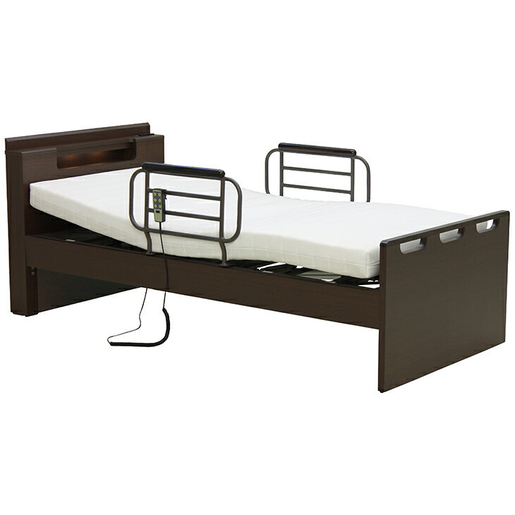 【SALE期間中10%OFFクーポン発行!!】電動リクライニングベッド シングル 介護ベッド リクライニングベッド 手すり付 ベッド 国産ウレタンマットレス付 リモコン操作 2モーター 非課税 介護 LED照明付 コンセント付 民泊 送料無料