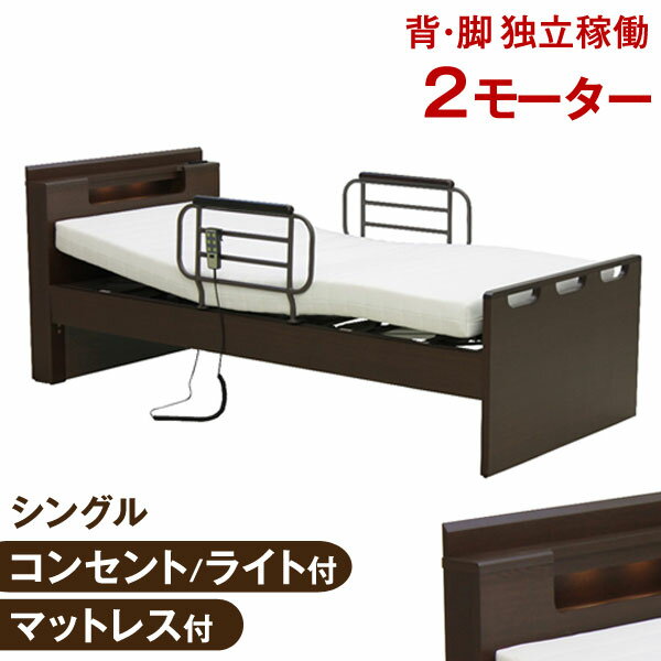 【20時〜5%OFFクーポン】 電動ベッド 2モーター 宮付き ライト付き シングル 寝具 セット 開梱設置付き 無段階リクライニング ウレタン マットレス 介護ベッド 電動リクライニングベッド 介護 ベッド リクライニング サイドグリップ 電動 介護用ベッド