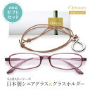 【期間限定クーポンで400円OFF】【日本製】 超軽量6.7g 老眼鏡 パープル メガネホルダー セット ギフトセット おしゃれ かっこいい 軽い UVカット 非球面レンズ 鯖江 メガネ掛け ペンダント 本革 レディース メンズ 40代 50代 60代 +0.75~+4.00 スクエア 紫