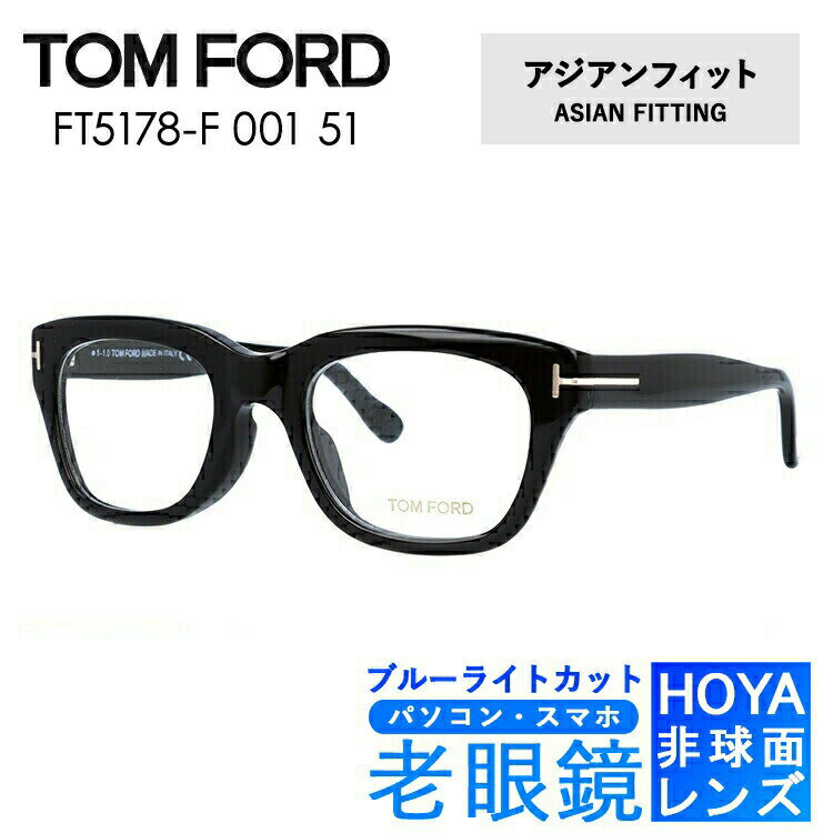ブルーライトカット老眼鏡セット PC老眼鏡 トムフォード メガネフレーム 【ウェリントン型】 TOM FORD アジアンフィット FT5178F 001 51 (TF5178F 001 51) ユニセックス メンズ レディース スマホ眼鏡 リーディンググラス 眼精疲労 度数+0.50〜+3.50 人気メガネ