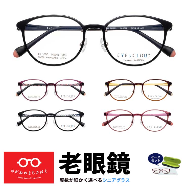 老眼鏡 アイクラウド レディース 軽い 痛くない ボストン かわいい おしゃれ シニアグラス 視力補正 度数調整 度数調節 左右違い 度付 HOYA PCメガネ ブルーライトカット 度数 0.25 0.5 0.75 1.0 1.25 1.5 1.75 2.0 2.25 2.5 2.75 3.0 3.25 3.5 3.75 4.0 EC1036 ショップ:老眼鏡 遠近両用 鯖江ワークス