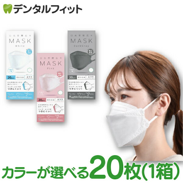 カラーが選べる 口元空間広々マスク 20枚入(ホワイト、ピンク、ダークグレー) 個包装 【ふつうサイズ 80×205mm 4層構造 高機能 ノーズワイヤー 快適 立体マスク 3D 】ウイルス飛沫99%カット 【キャンセル・返品交換不可】 ショップ:歯科医院専売品のデンタルフィット