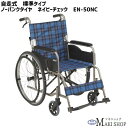 【非課税】マキテック自走式車椅子 EN-50NC 標準タイプ ネイビーチェック ノーパンクタイヤ 折りたたみ 座面40cm 敬老の日 プレゼント 孫 祖母 【送料無料】